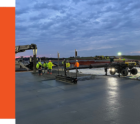 Exterior concrete paving involves the installation of durable, high-quality concrete surfaces for outdoor areas such as driveways, parking lots, sidewalks, and roadways. Our process includes site preparation, forming, pouring, and finishing concrete to create a smooth, level surface that can withstand traffic, weather, and wear. We utilize 3D GPS equipment and laser screed for the placement of subgrade base materials as well as concrete to ensure top quality results.