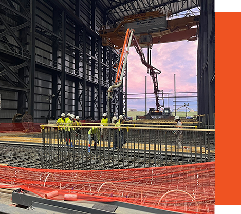 Our projects often require large monolithic concrete placements (aka mass pours) to ensure a joint free structure for the engineering necessary to support the required loads. This poses a risk of weakening or cracking during curing due to the added heat in the core of the mass pour. Our in-house team designs mass pour solutions to combat excessive heat transfer in the core of large concrete placements. From engineering cooling systems to mix designs and hot weather practices, we can meet and exceed the required mass pour specifications from ACI.